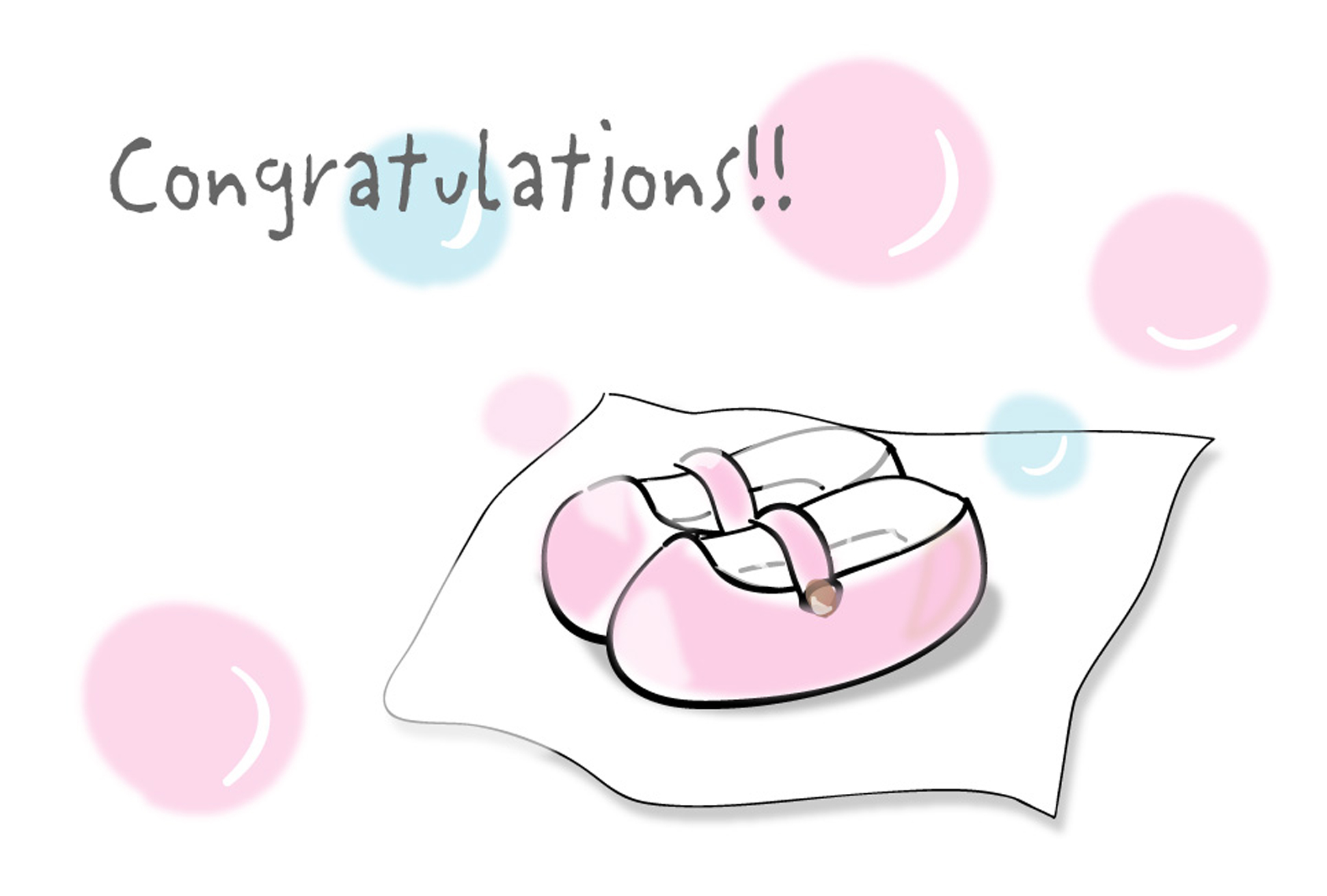 出産祝いはがきテンプレート「女の子のベビーシューズ」ダウンロード