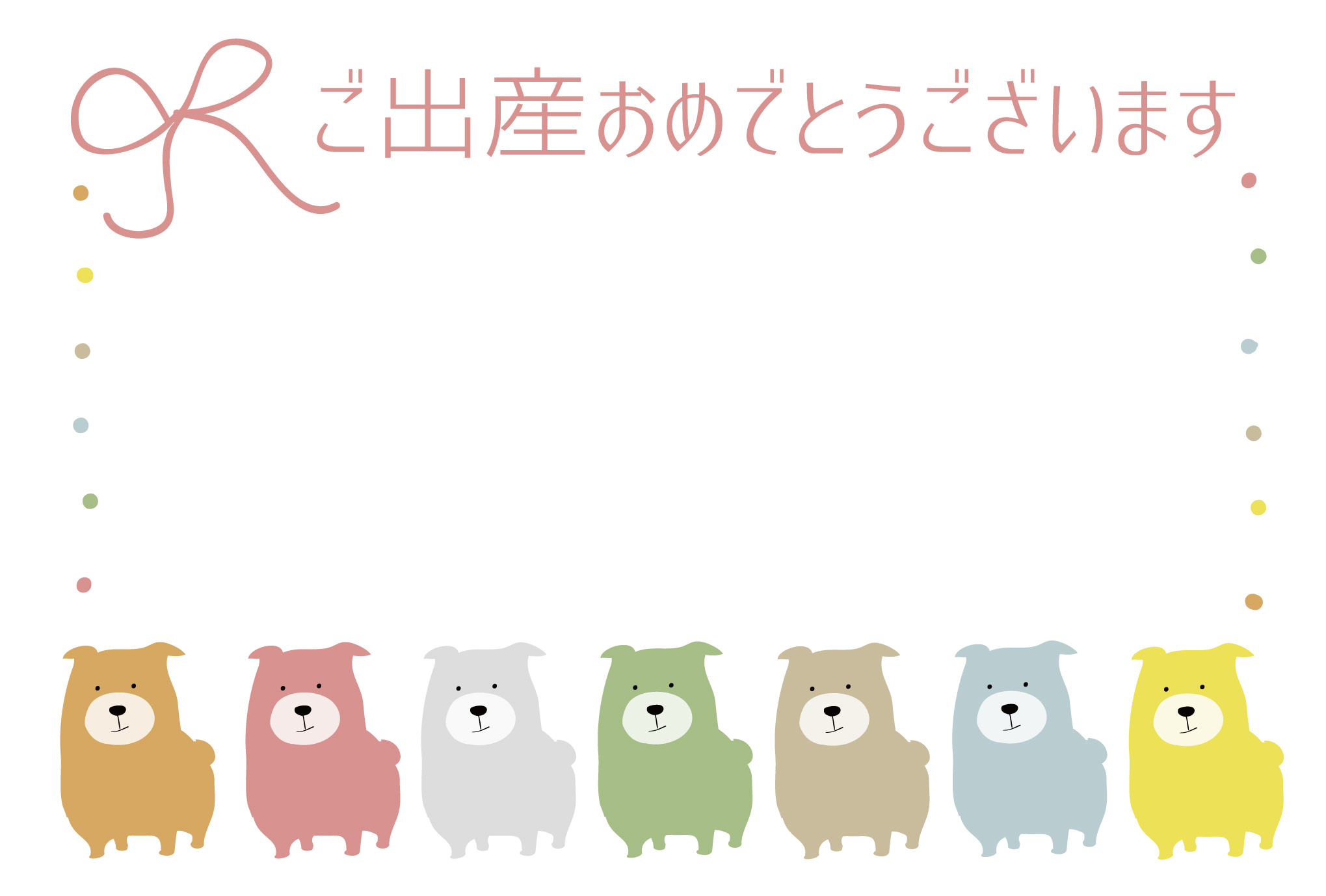 出産祝いはがきテンプレート「ほのぼのわんこ」ダウンロード
