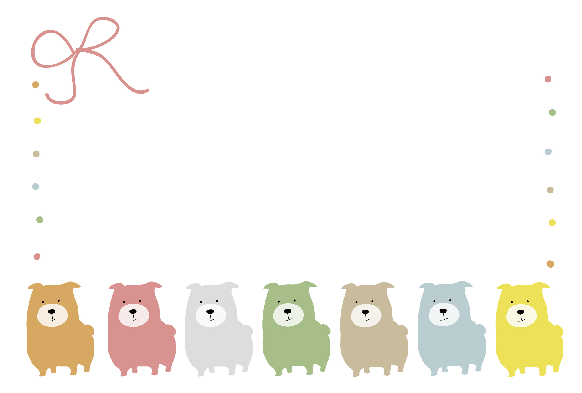 出産祝い・報告はがきテンプレート「文字なし・わんこの飾り枠」ダウンロード