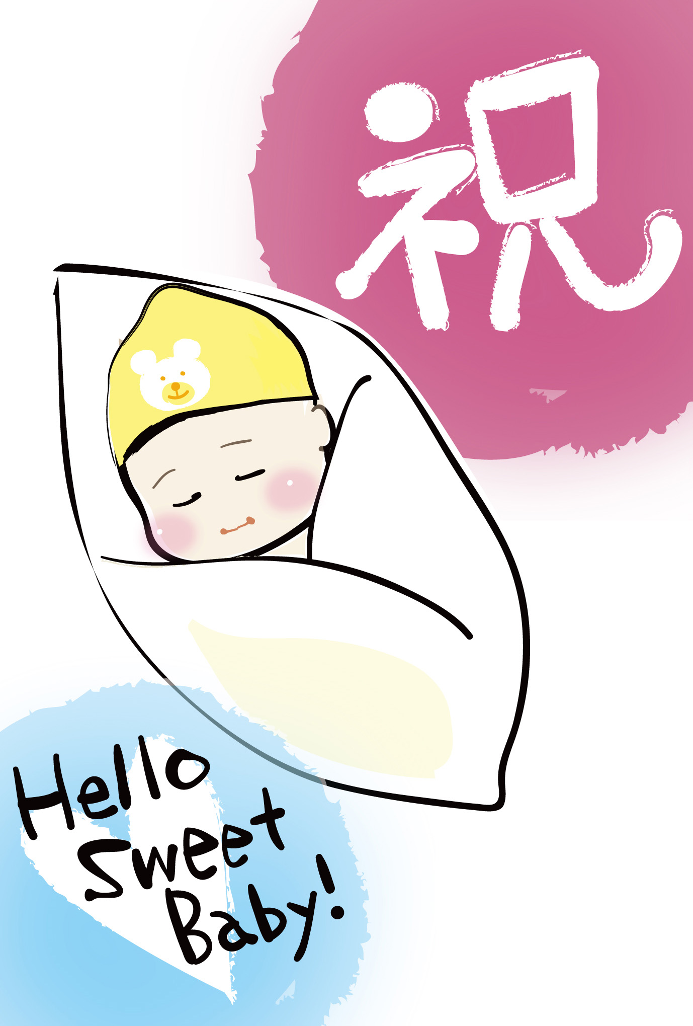 ほんわかかわいい赤ちゃんのイラストの出産祝いはがきです