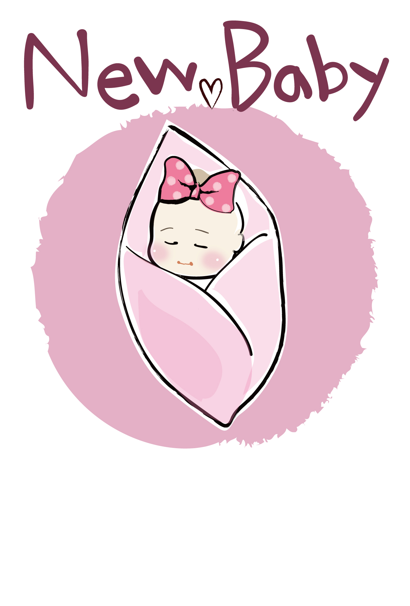 出産報告はがきテンプレート「おくるみの赤ちゃん女の子」ダウンロード