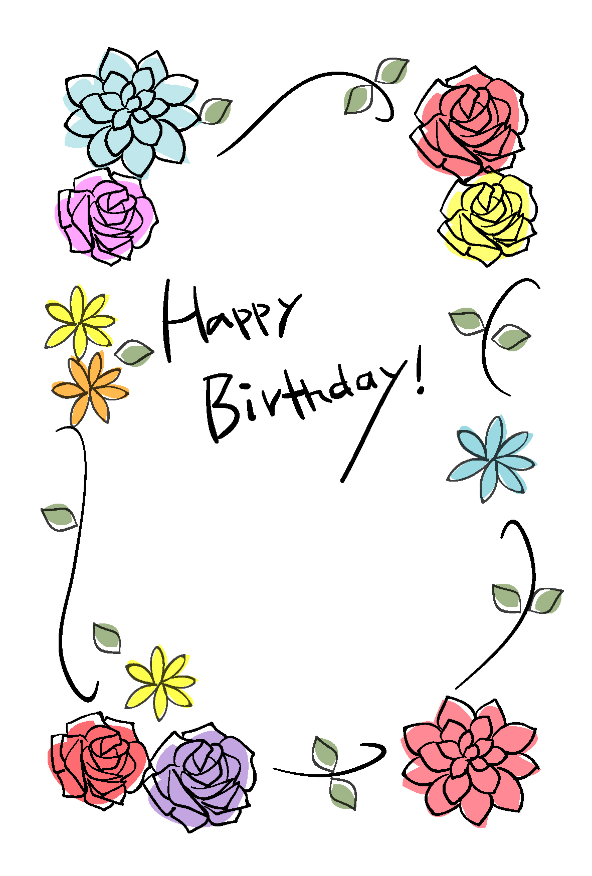 誕生日のお祝いはがきテンプレート「お花の飾り枠」ダウンロード