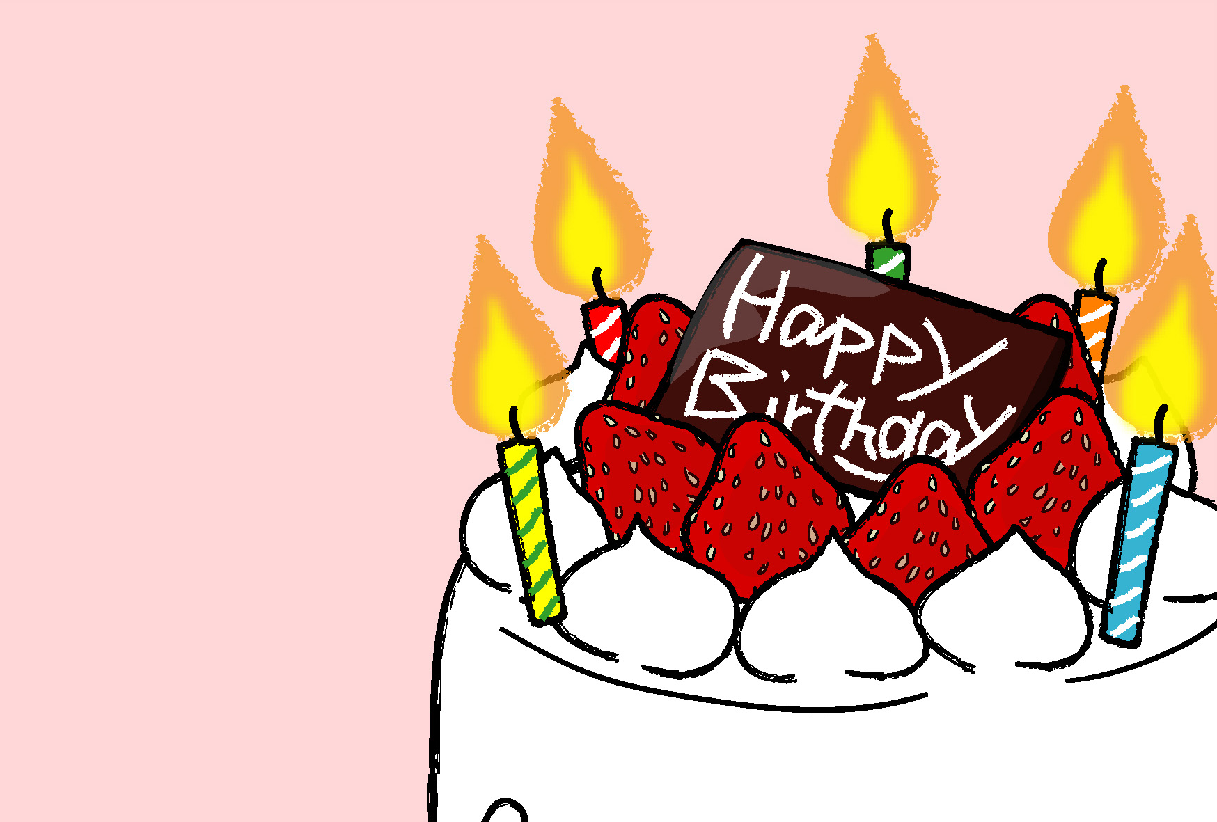 誕生日のお祝いはがきテンプレート「ほんわかバースデーケーキ」ダウンロード