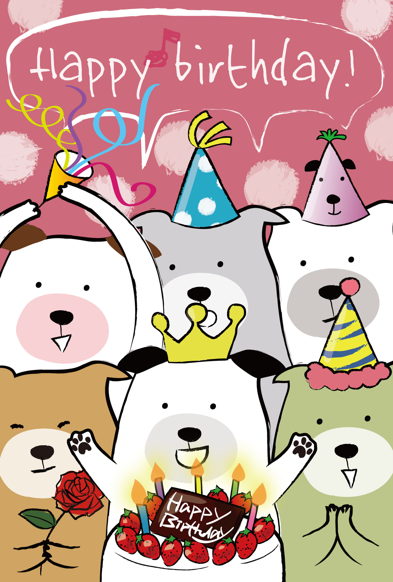かわいらしいわんこたちのお祝いバースデーカードその2