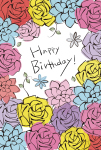 ケーキやお花のイラストのかわいいバースデーカードテンプレートです
