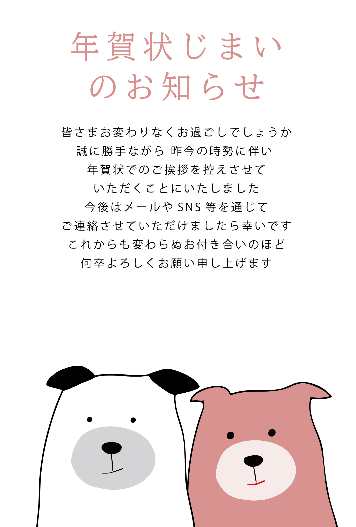 年賀状じまいのお知らせはがきテンプレート「仲良しわんこ」ダウンロード