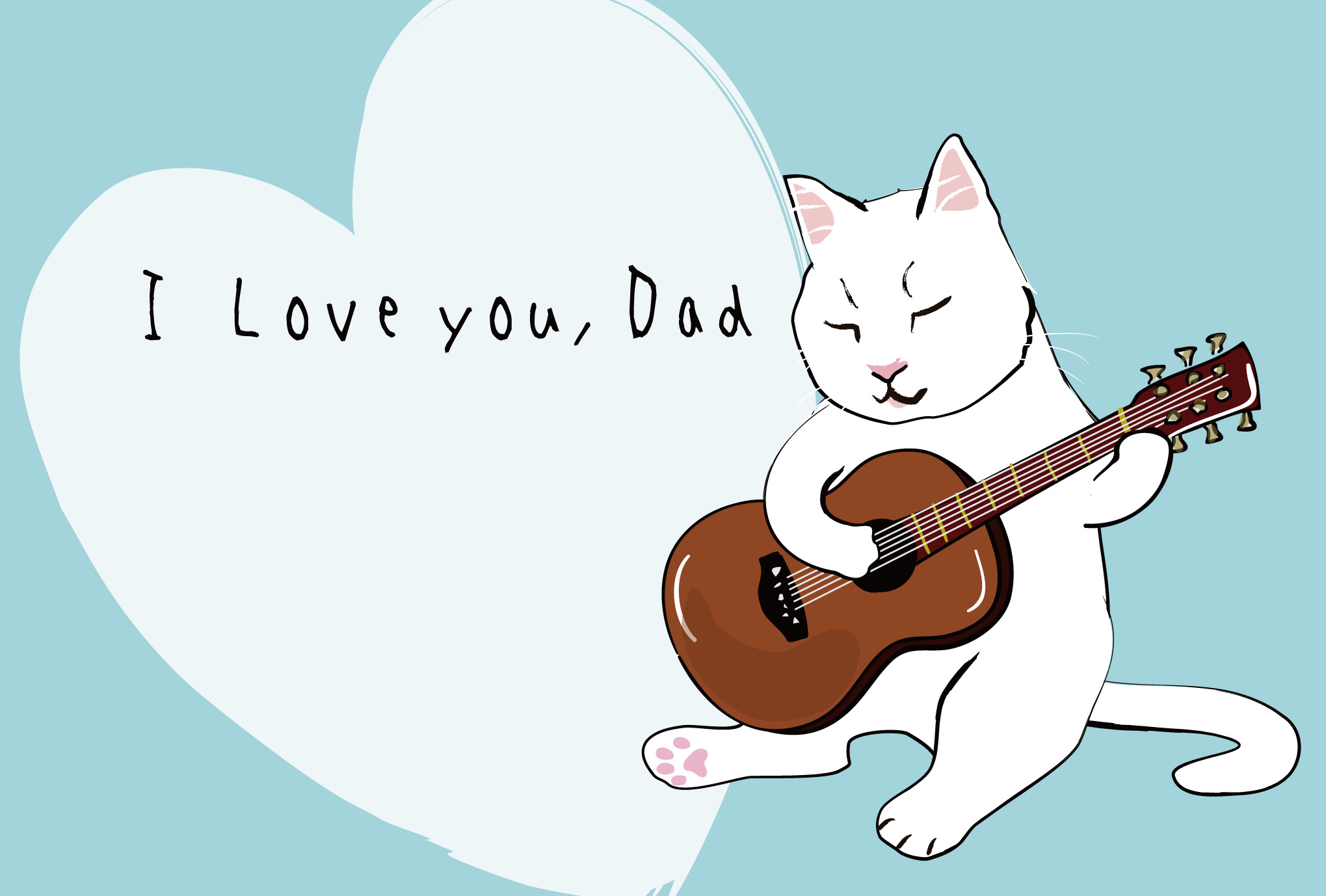 父の日のお祝いはがきテンプレート「ギターを弾く猫」ダウンロード
