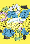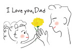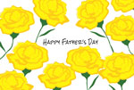 かわいいお父さんや黄色いバラのイラストのポストカードテンプレートです。父の日に心をこめて
