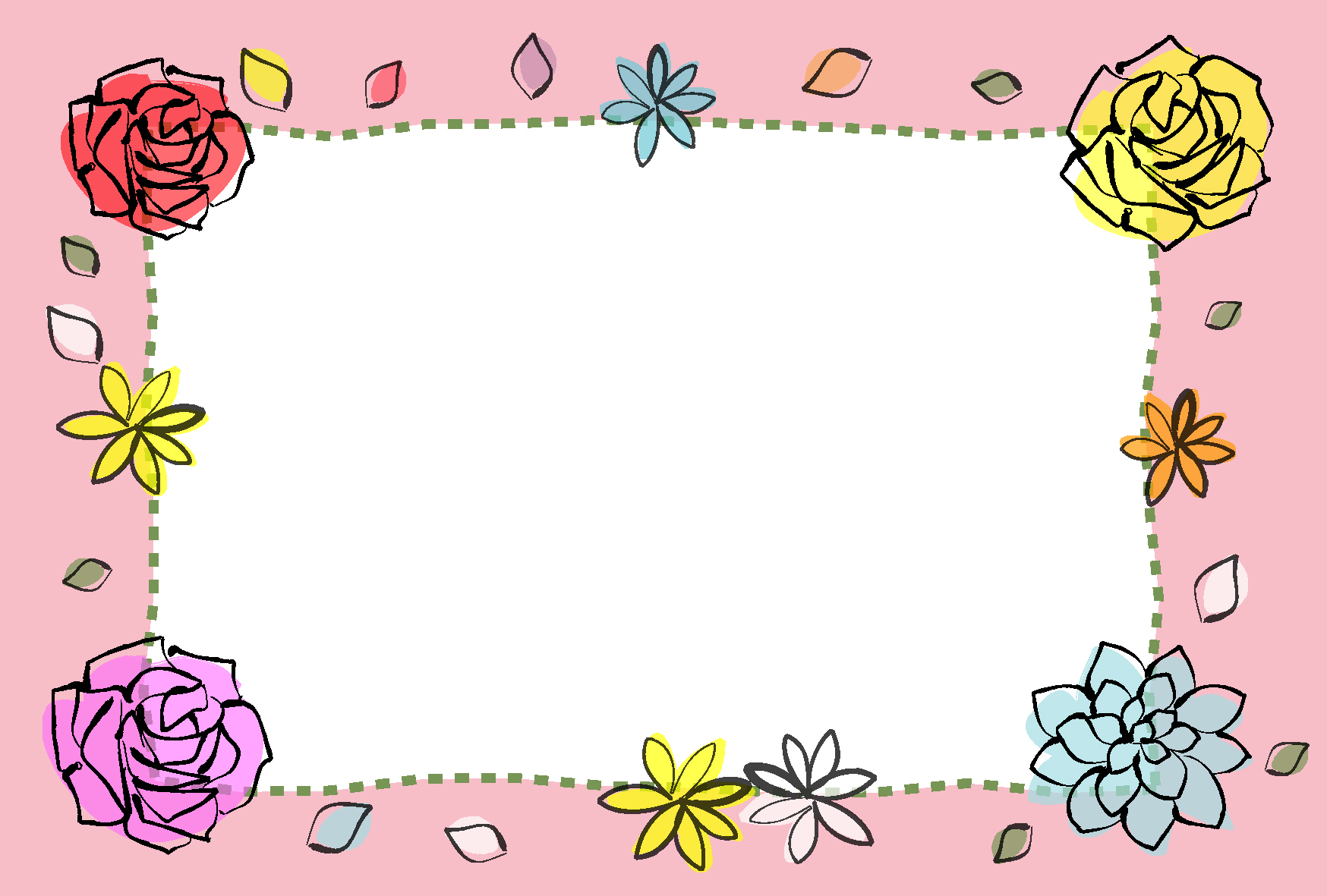 Freeポストカードテンプレート・お花の飾り枠JPG702KB |