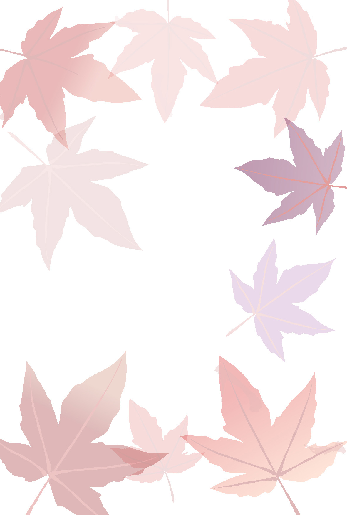 淡いもみじの背景のポストカードテンプレート。敬老の日など秋のお便りに
