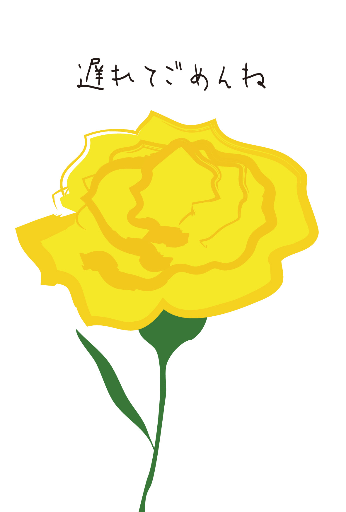 Free(多目的)はがきテンプレート「遅れてごめんね・黄色いバラ」ダウンロード