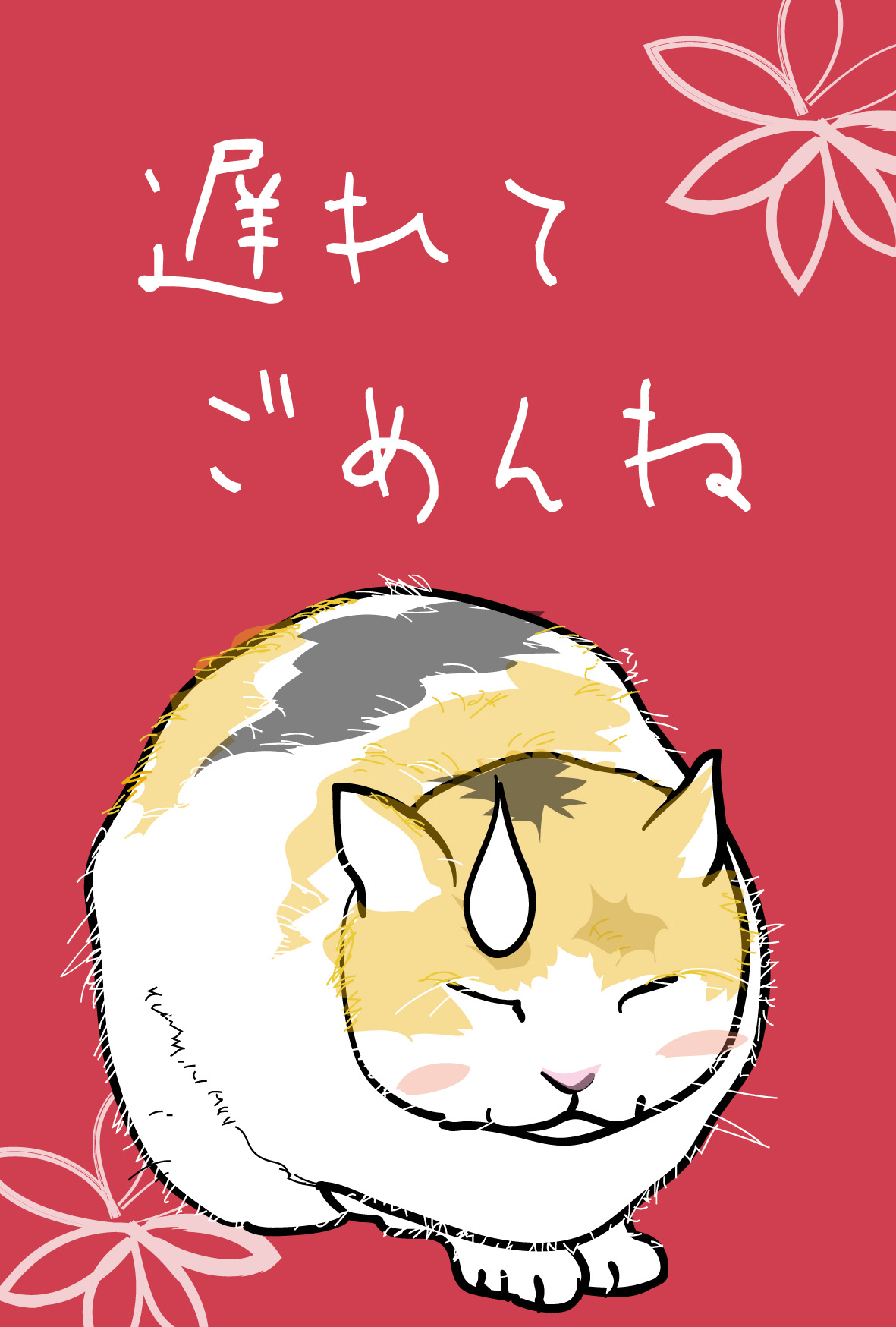 Free(多目的)はがきテンプレート「遅れてごめんね・猫」ダウンロード