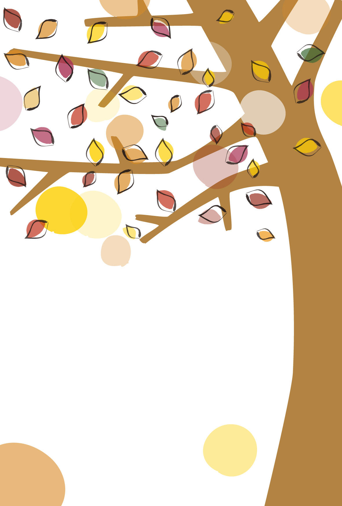 Free(多目的)はがきテンプレート「色とりどりの葉っぱと木・秋」ダウンロード