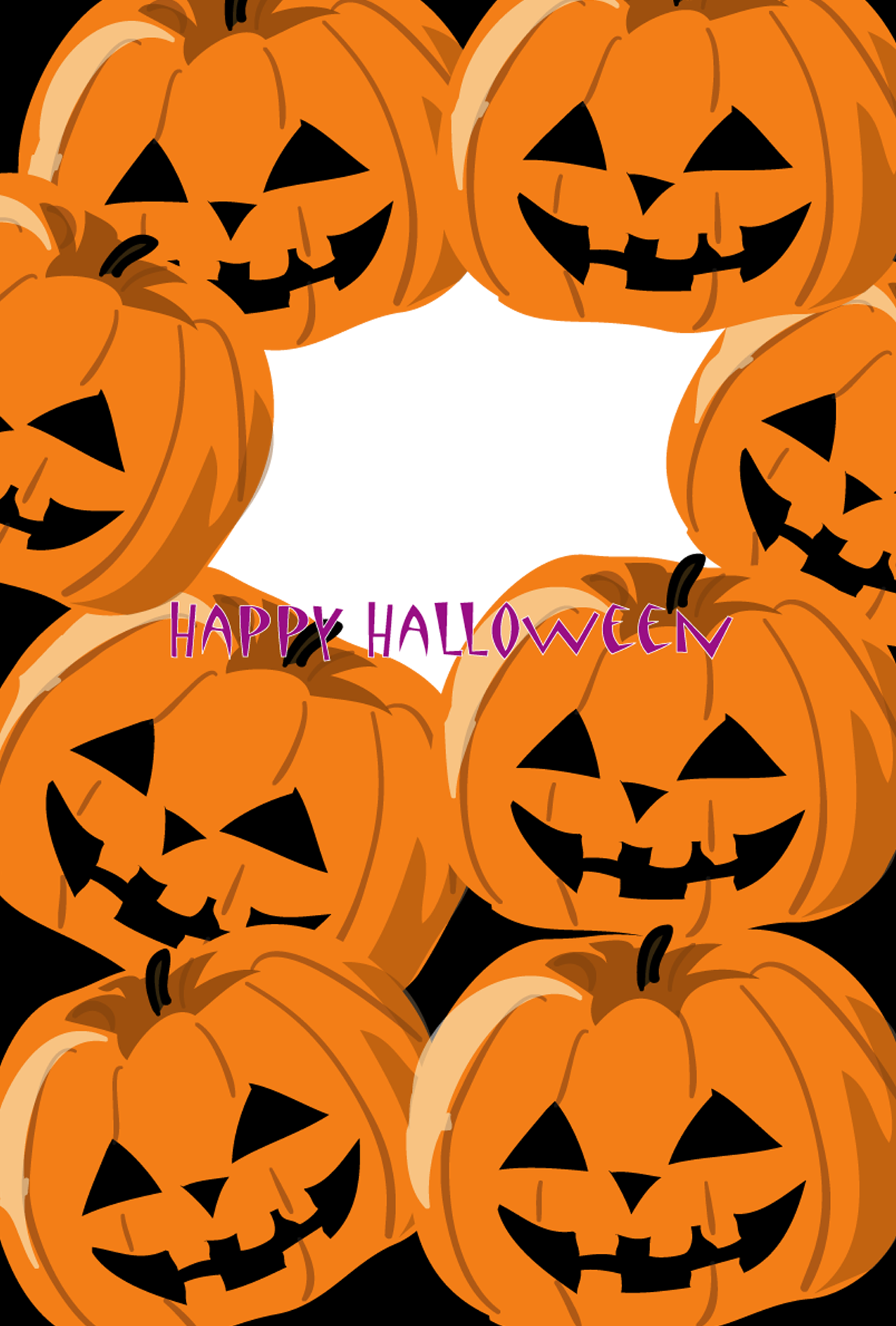 ハロウィンのポストカードテンプレート「写真フレーム・かぼちゃだらけ」ダウンロード