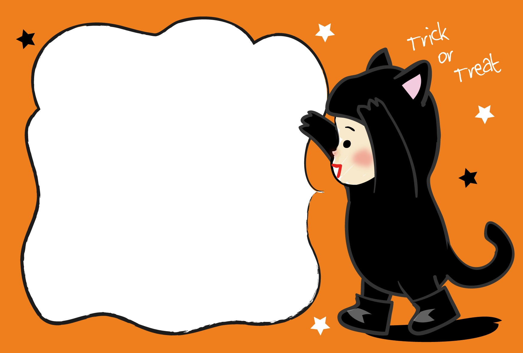 ハロウィンのポストカードテンプレート「着ぐるみの子ども」ダウンロード