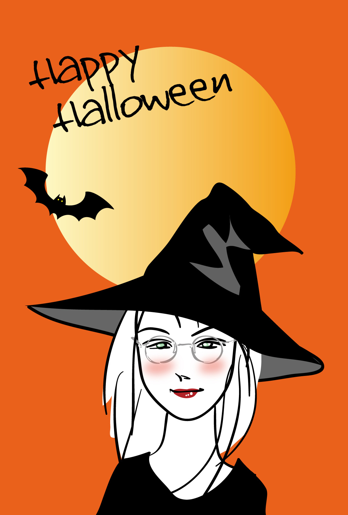 メガネをかけた魔女と満月のイラストのハロウィンカードその2です