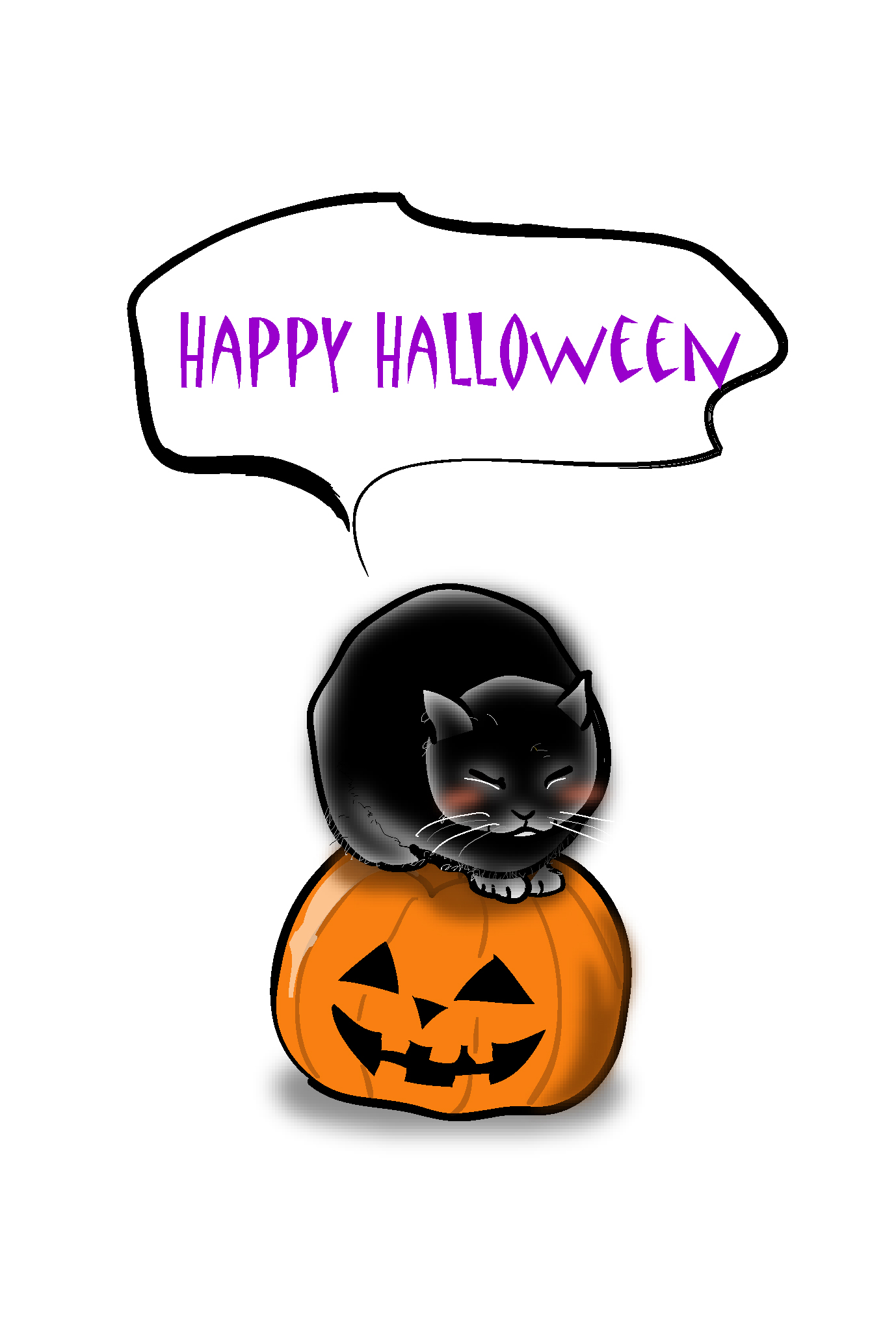 黒猫とかぼちゃのイラストの シンプルなハロウィンカードテンプレート