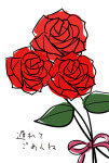 Freeポストカードテンプレート「遅れてごめんね・赤いバラ」JPG433KB |