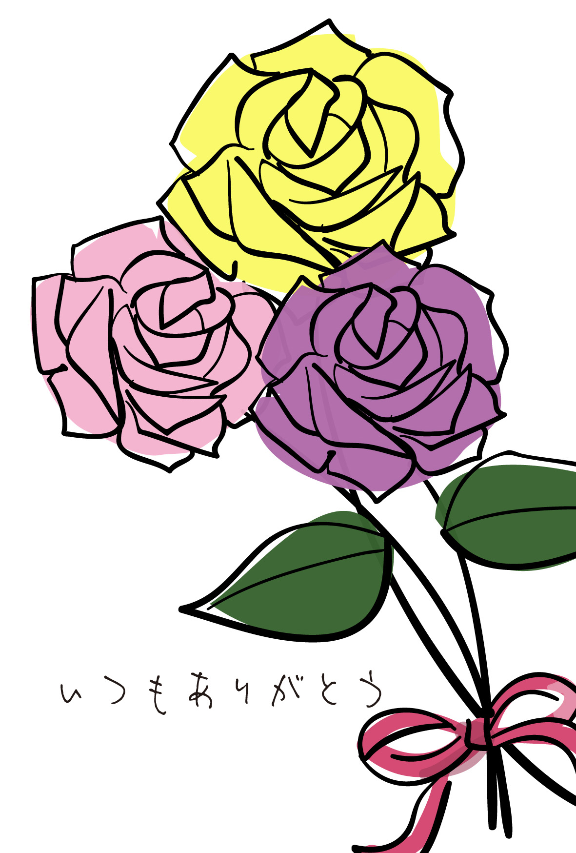 落ち着いた淡い色合いのバラのイラストです。感謝の気持ちをこめて