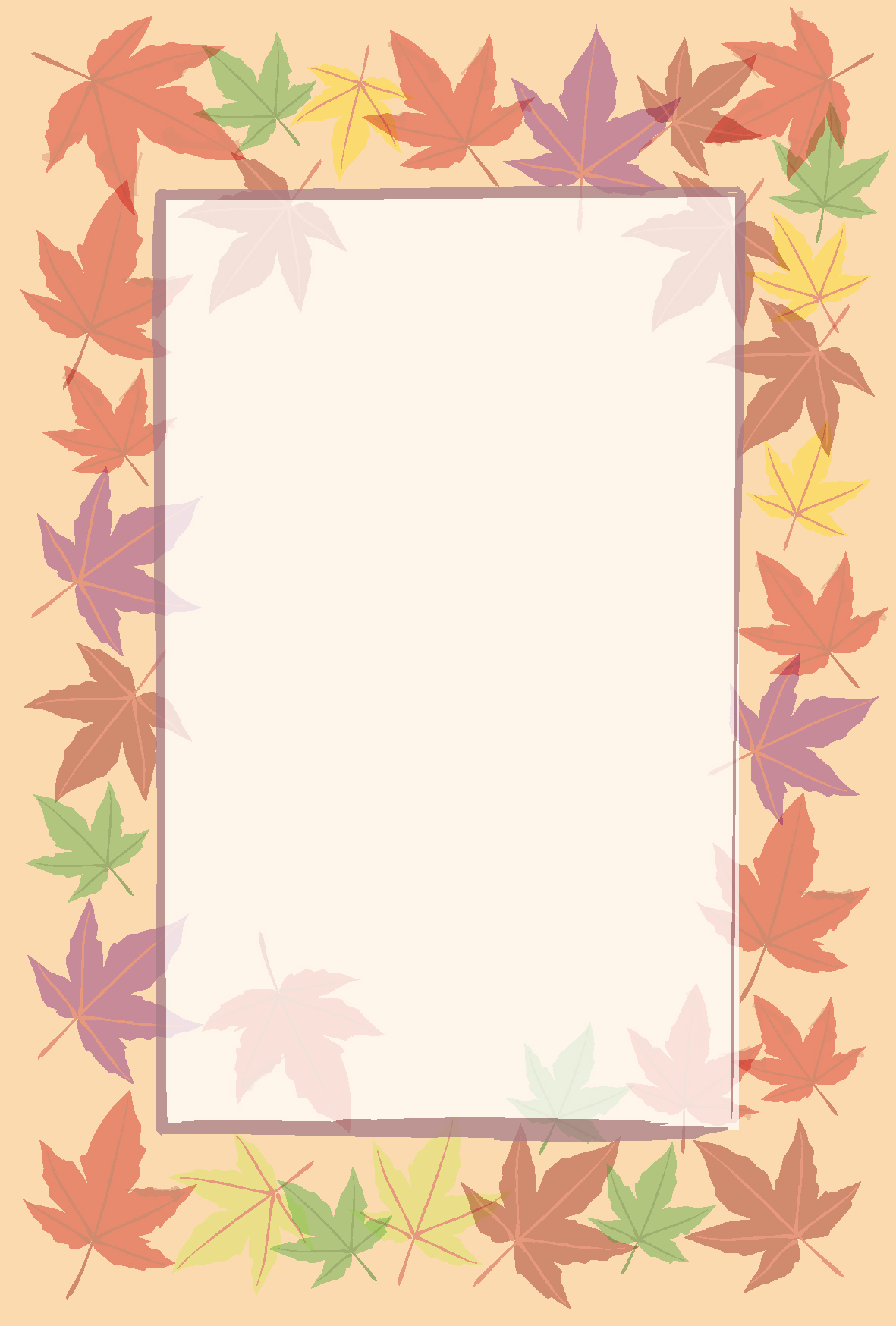 もみじの飾り枠その2。ちょっと和風でやわらかなもみじのはがきテンプレート。母の日や敬老の日など多目的にご利用ください