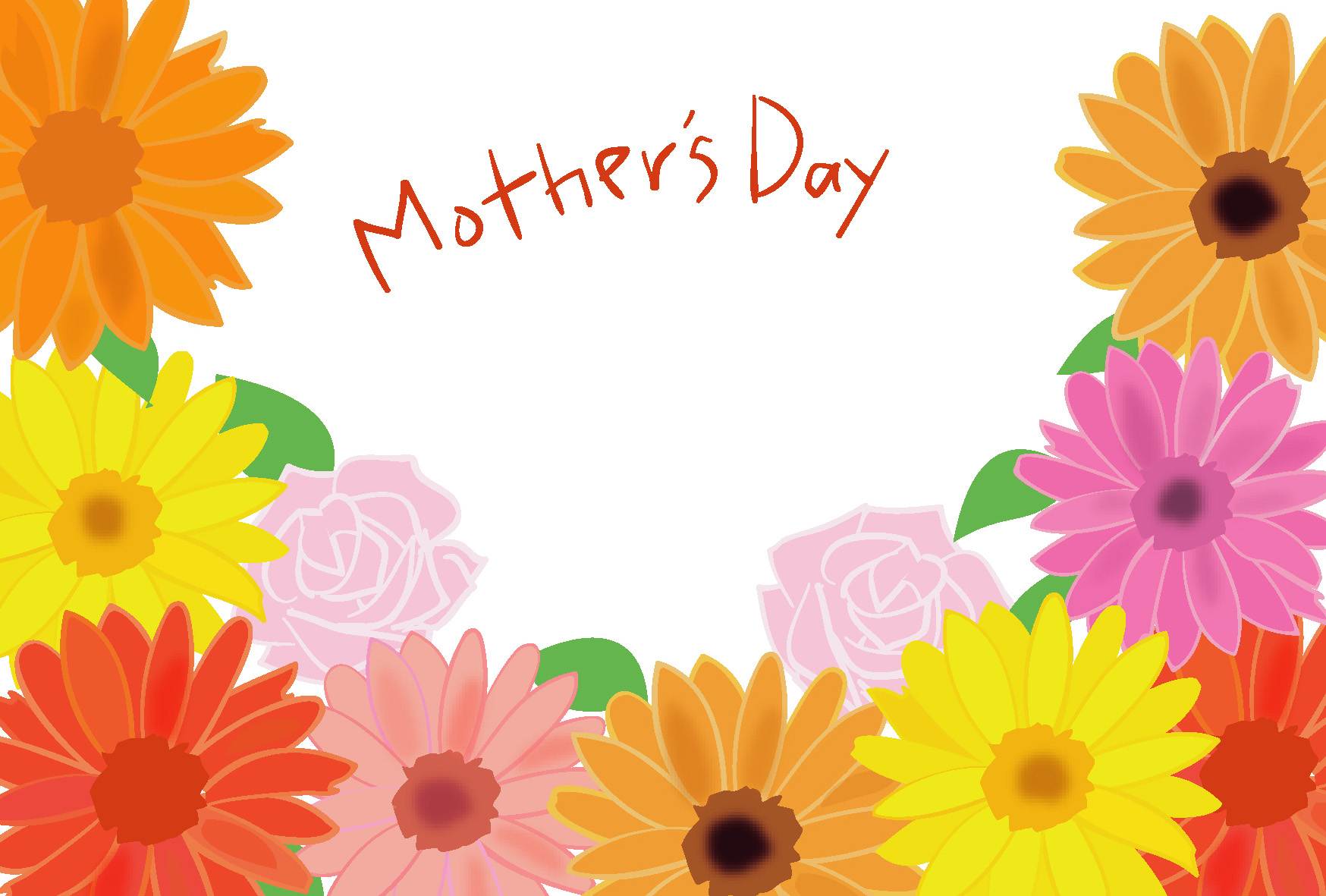 母の日のお祝いはがきテンプレート-ガーベラとバラダウンロード