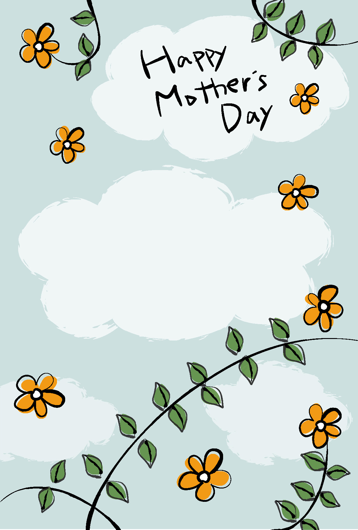 母の日のお祝いはがきテンプレート「オレンジの花と雲」ダウンロード