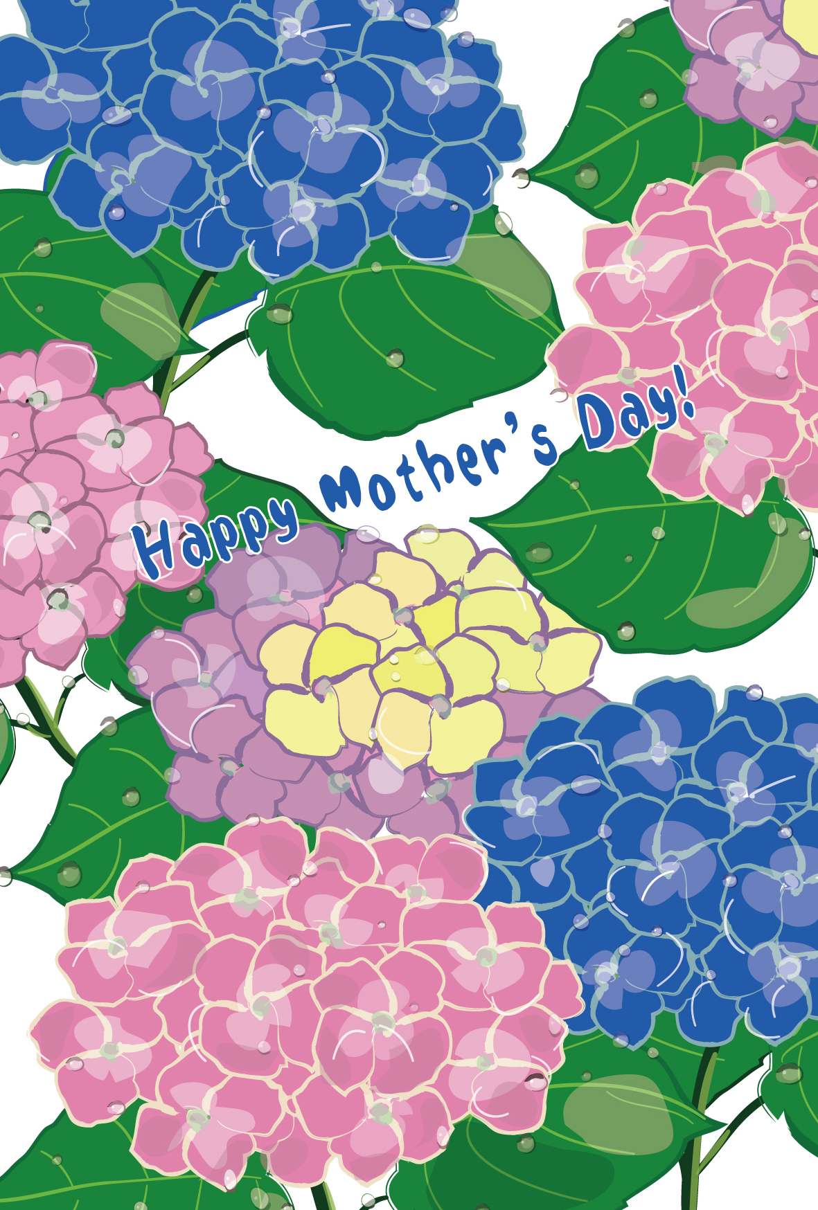 母の日のお祝いはがきテンプレート「あじさい3」ダウンロード