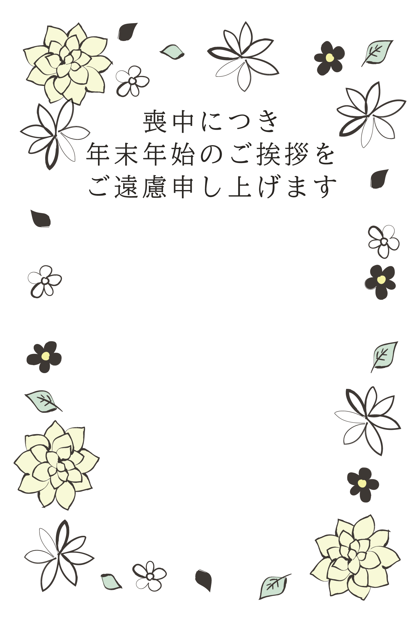 喪中はがきテンプレート「お花の飾り枠」ダウンロード