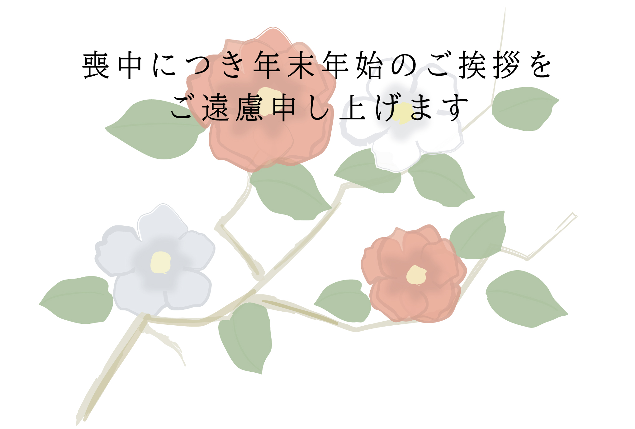 椿のイラストの背景のしっとり喪中はがきテンプレート