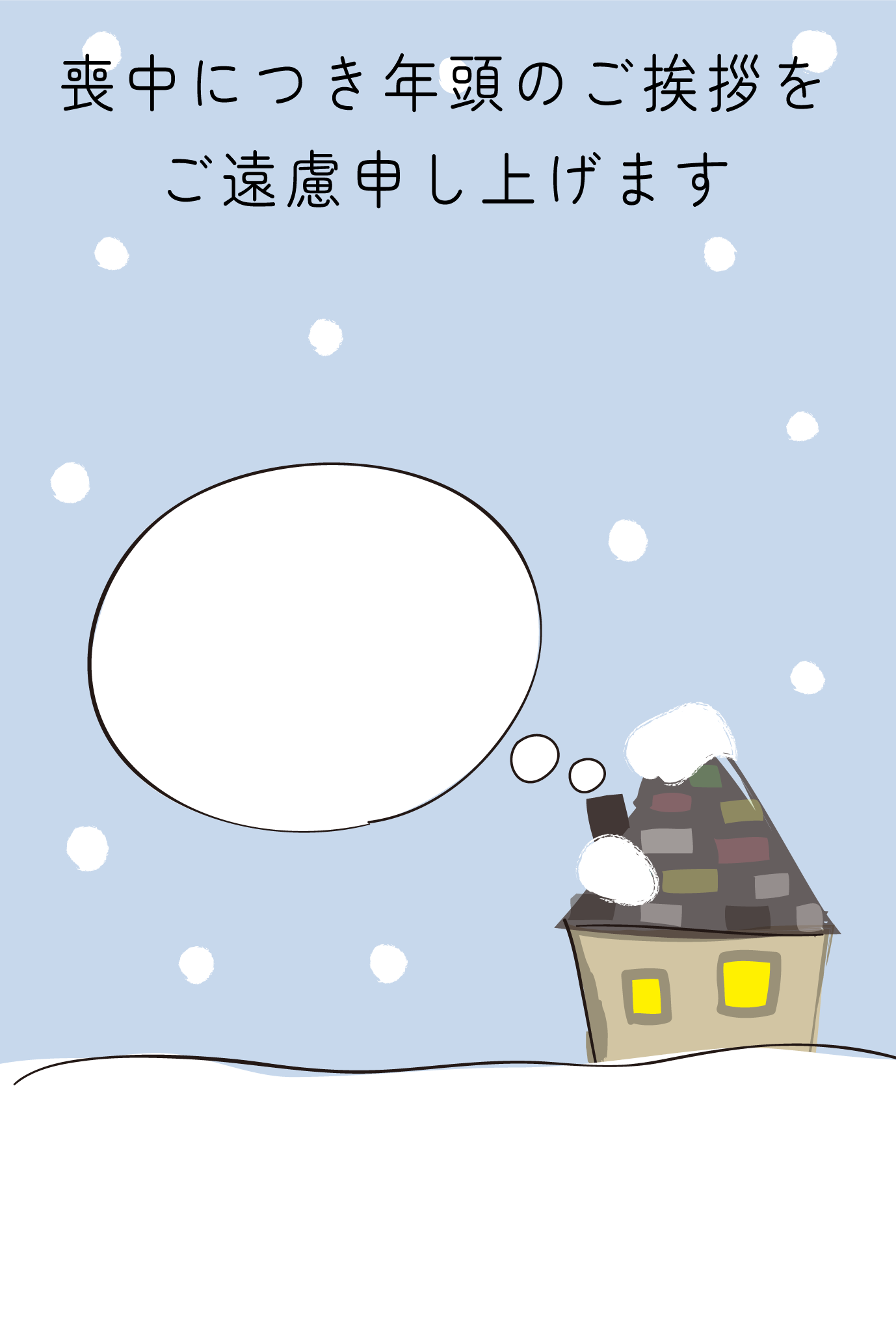 喪中はがき写真フレームテンプレート「雪と家」ダウンロード