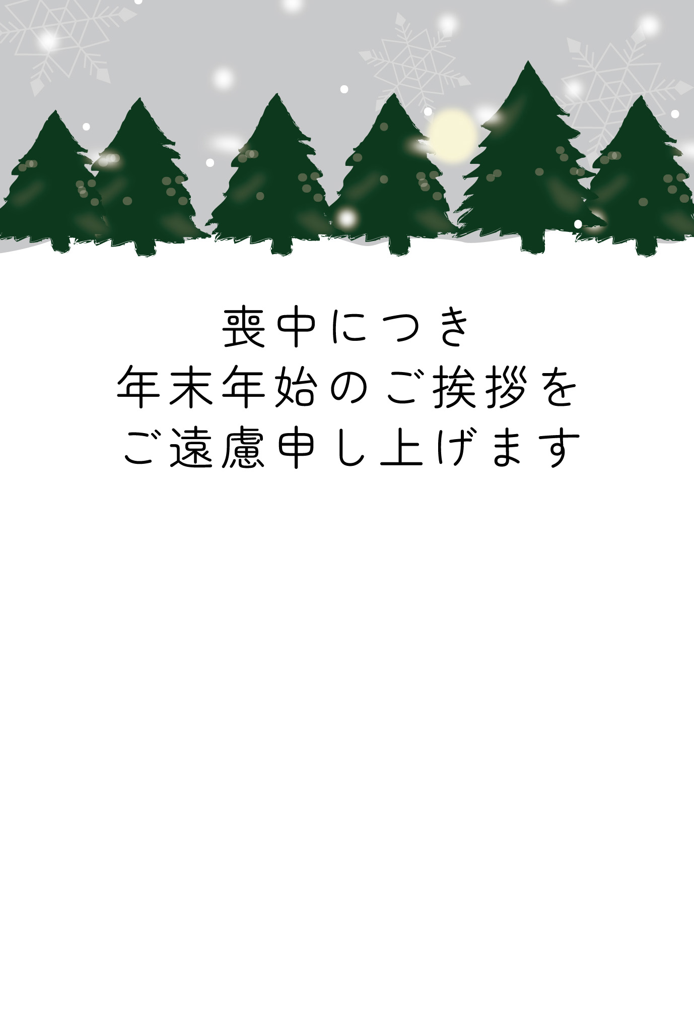 シックで冬らしい雪景色のイラストの喪中はがきテンプレート