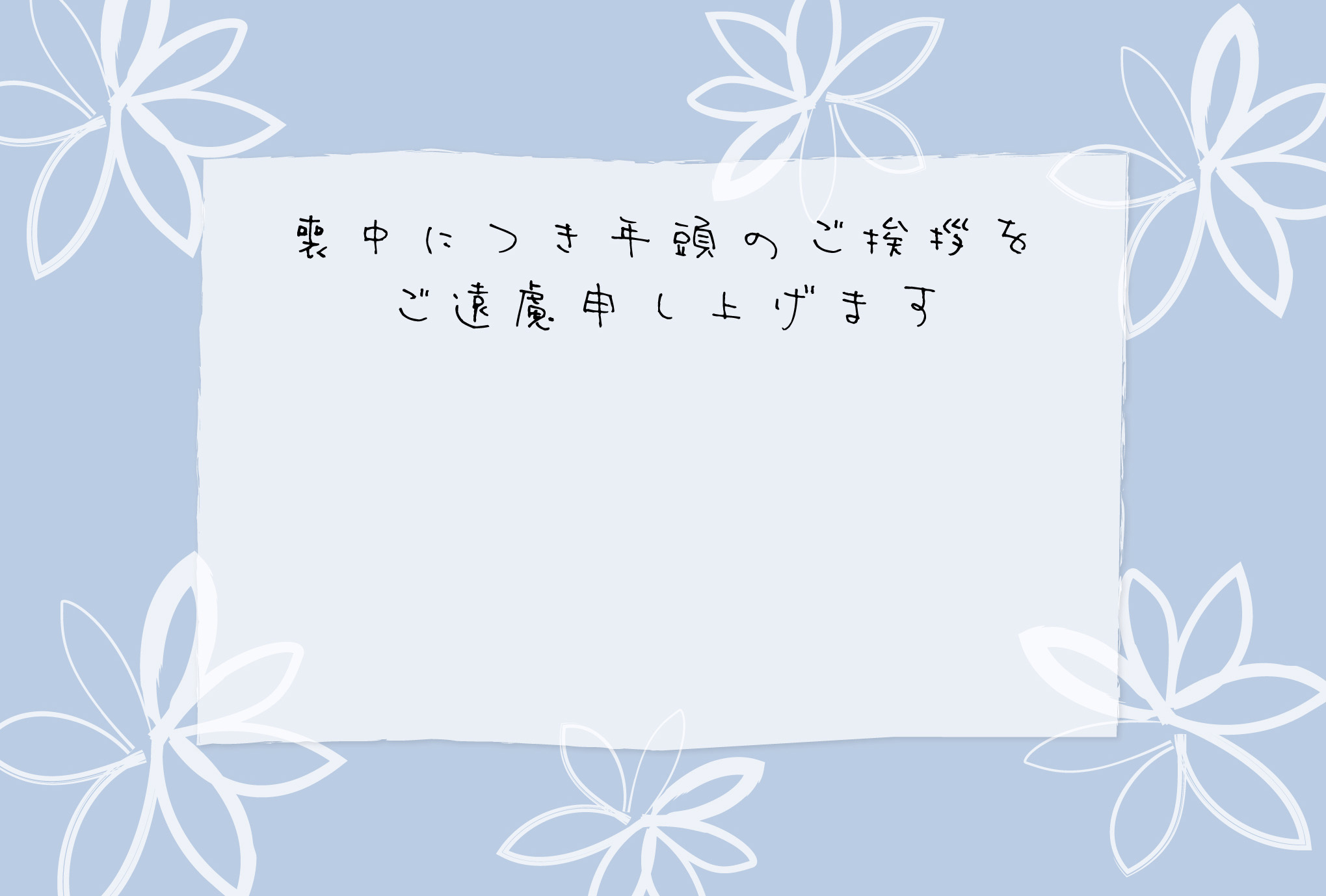 かわいらしい花のイラストと優しいブルーの喪中はがきテンプレート