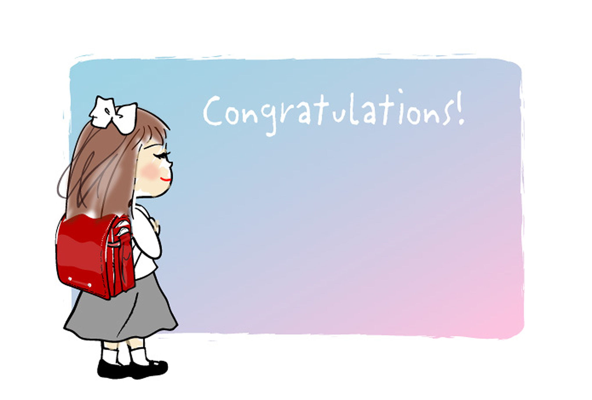 入学・卒業祝いポストカードテンプレート-Congratulations・女の子ダウンロード