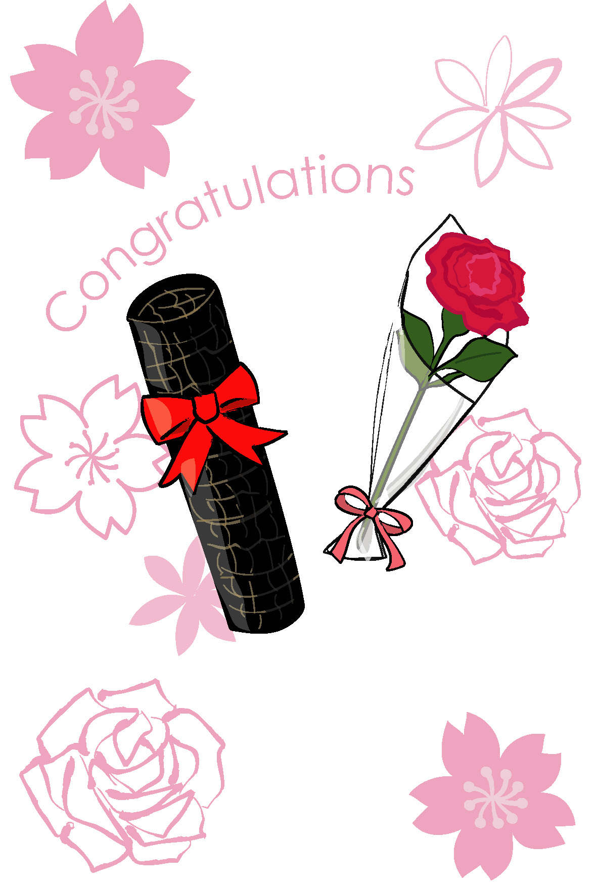 卒業祝いポストカードテンプレート「卒業証書とバラ2」ダウンロード