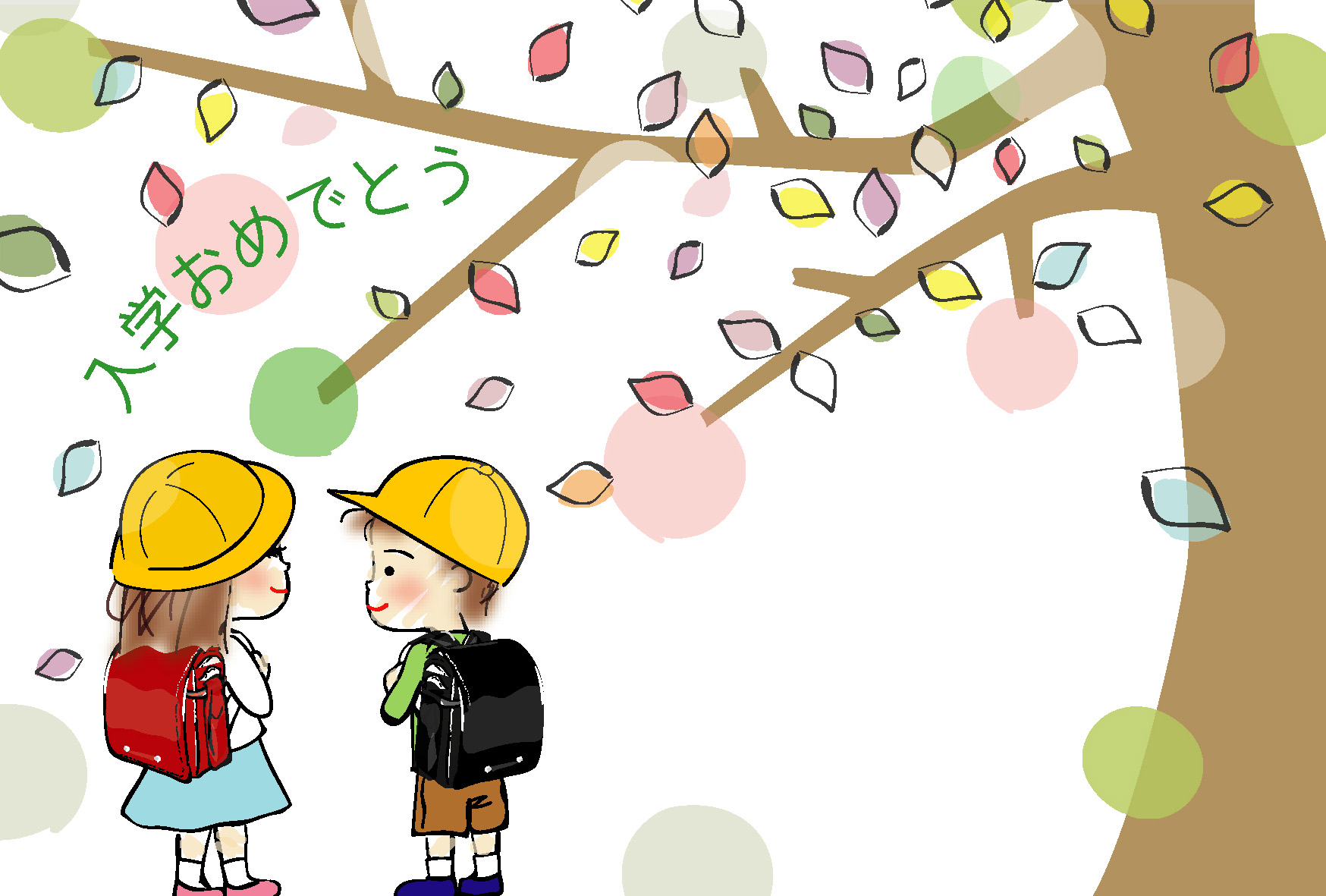 入学祝い・色とりどりの葉っぱと木と一年生2 JPG429KB |