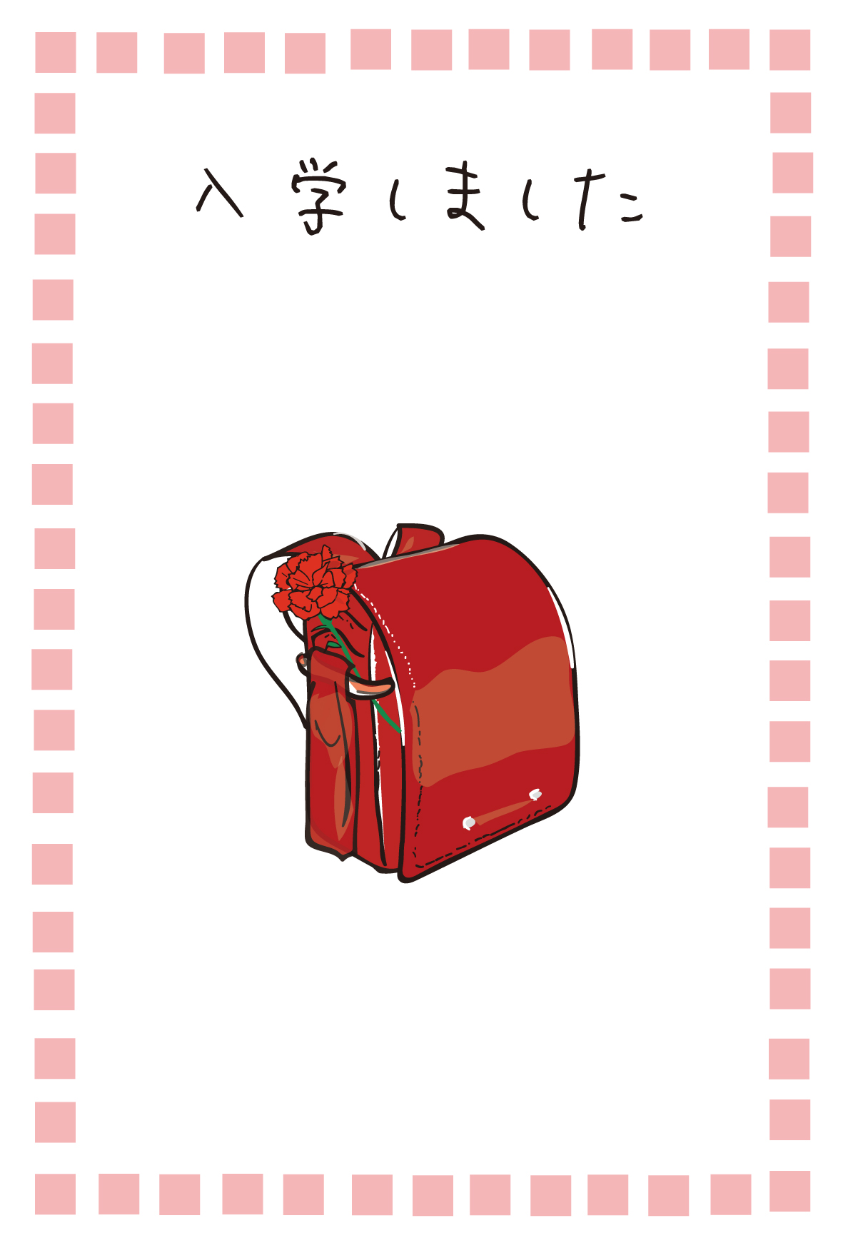 入学報告はがきテンプレート「赤いランドセル」ダウンロード