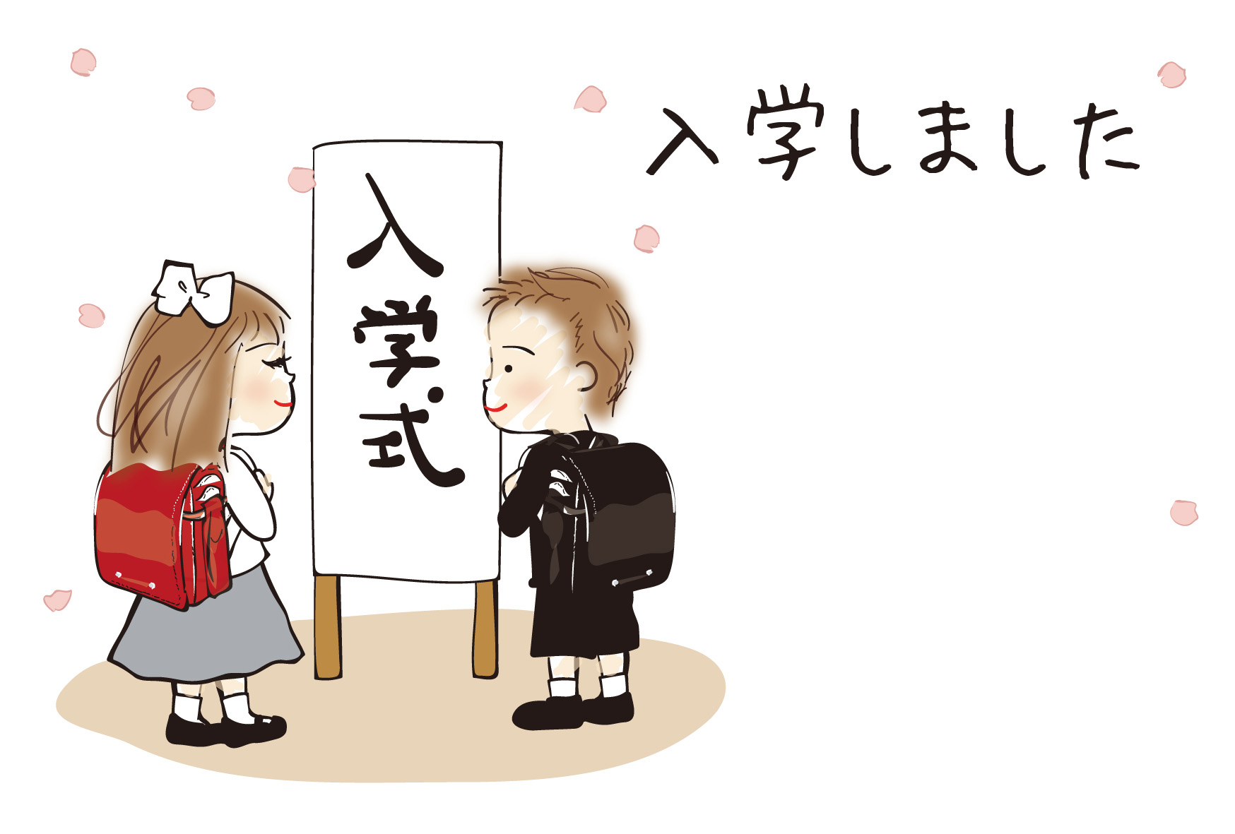 シンプルな新一年生のイラストです。右側にメッセージを入れてね