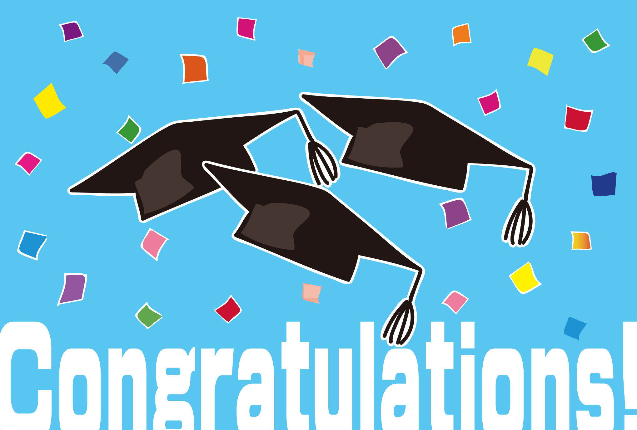 ちょっとPOPでかわいい角帽と紙吹雪の卒業祝いはがきテンプレート
