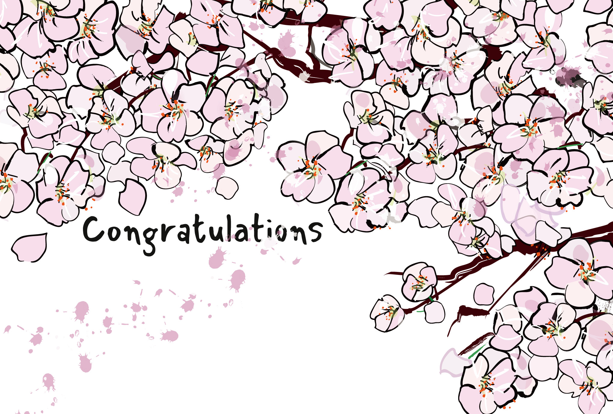 華やかで晴れやかな桜のイラストのはがき。結婚、出産、就職、昇進、試験合格、開業等各種お祝いに
