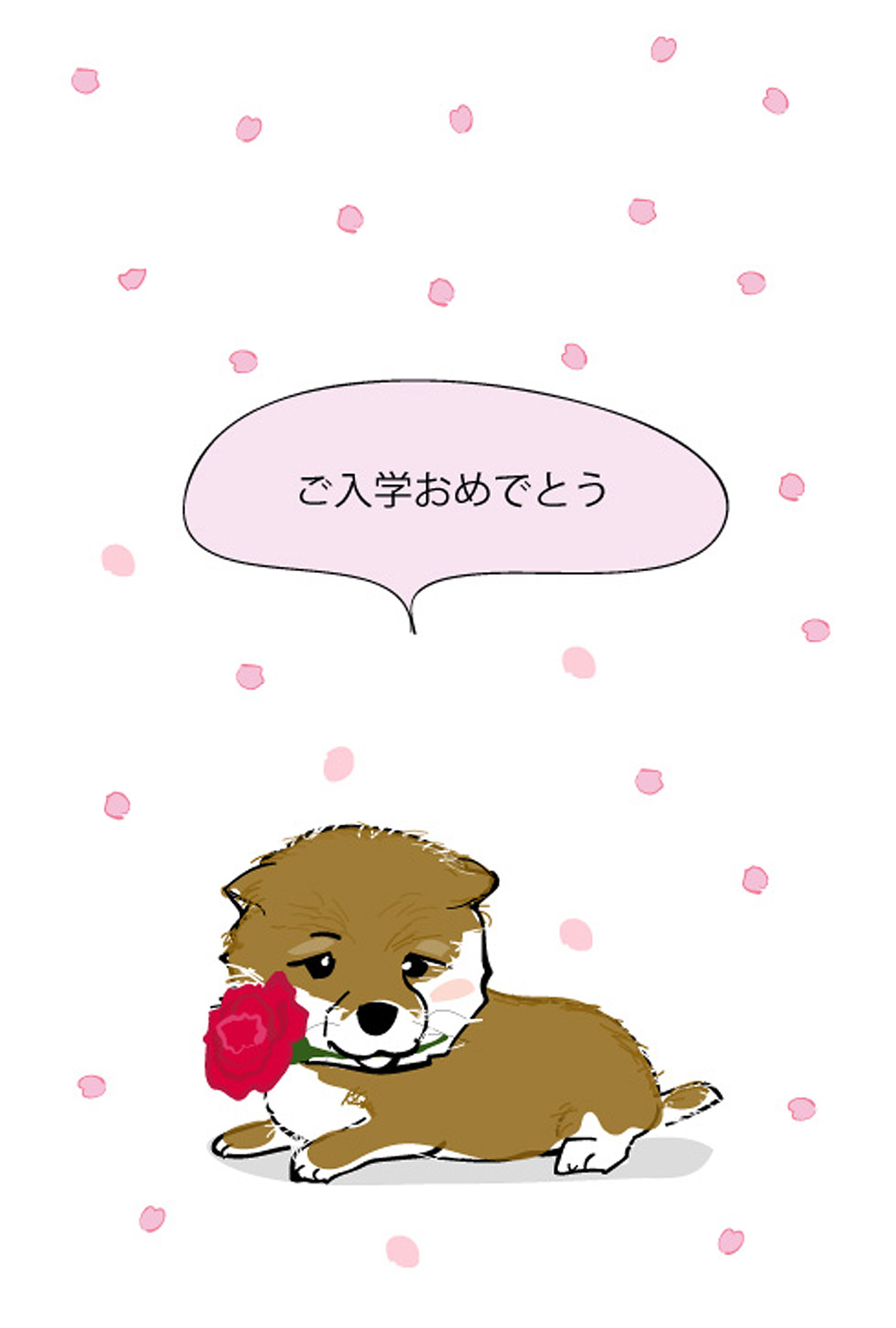 かわいい柴犬のイラストの入学祝いはがきテンプレートです