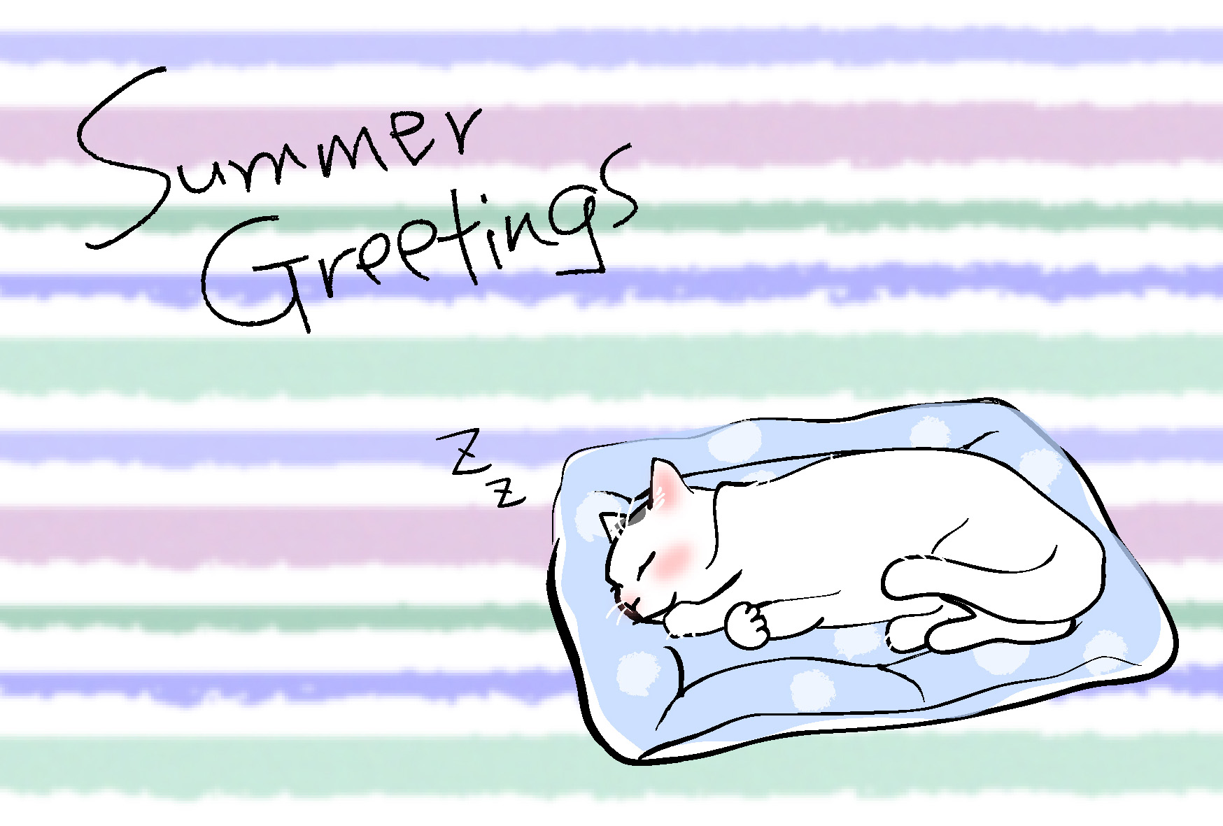 暑中見舞い・残暑見舞いはがきテンプレート「お昼寝猫」ダウンロード
