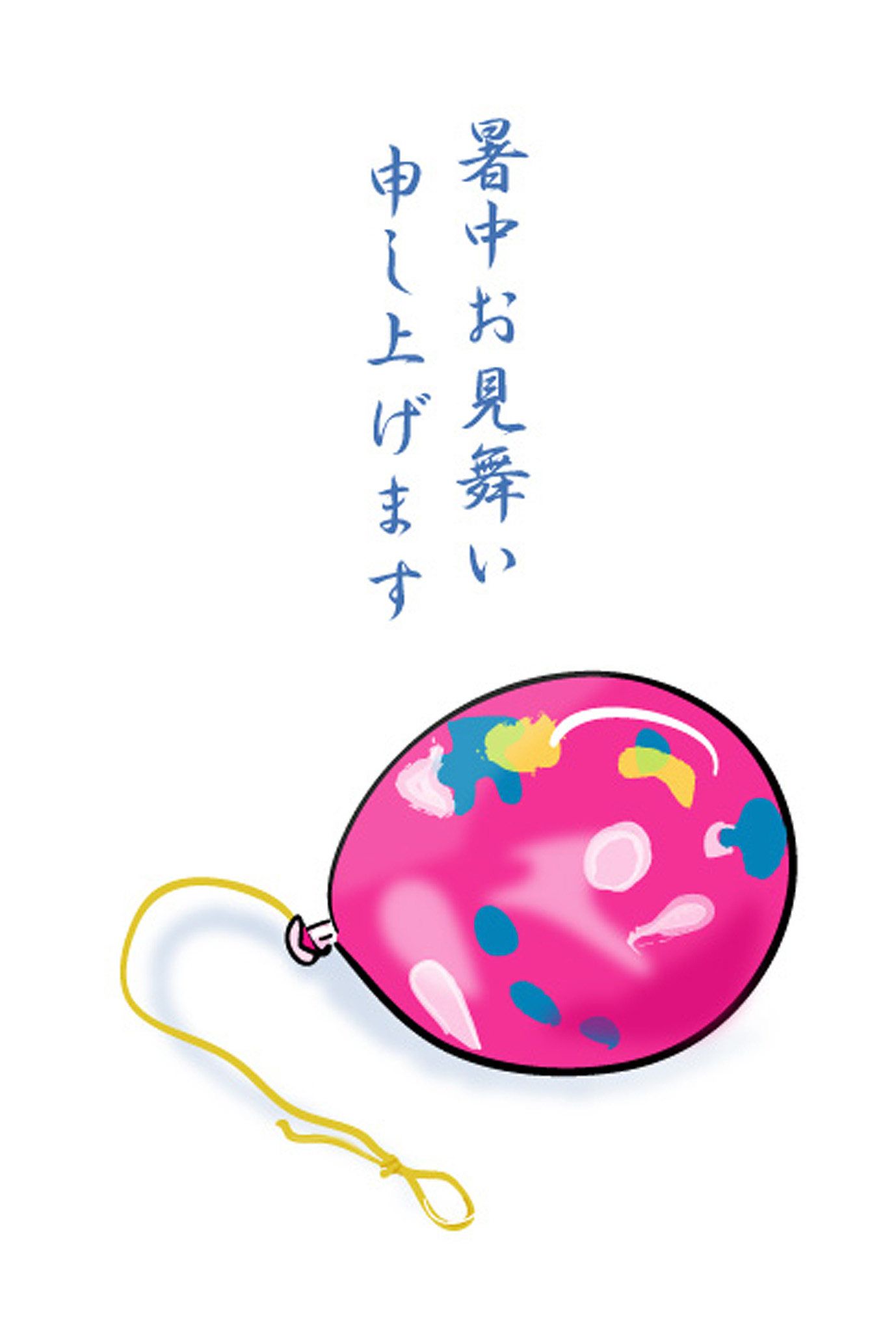 水風船のイラストの暑中見舞いはがきテンプレートです
