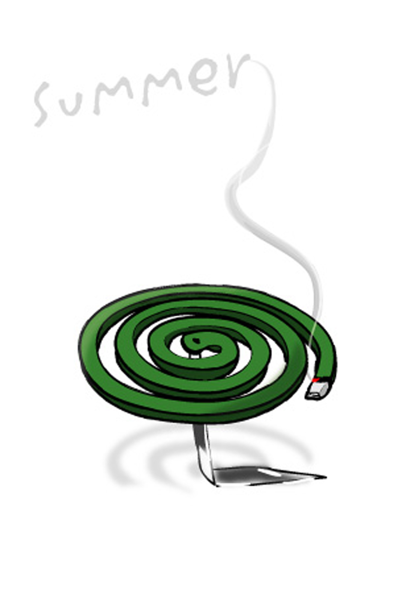 暑中見舞い・残暑見舞いはがきテンプレート「蚊取り線香」ダウンロード