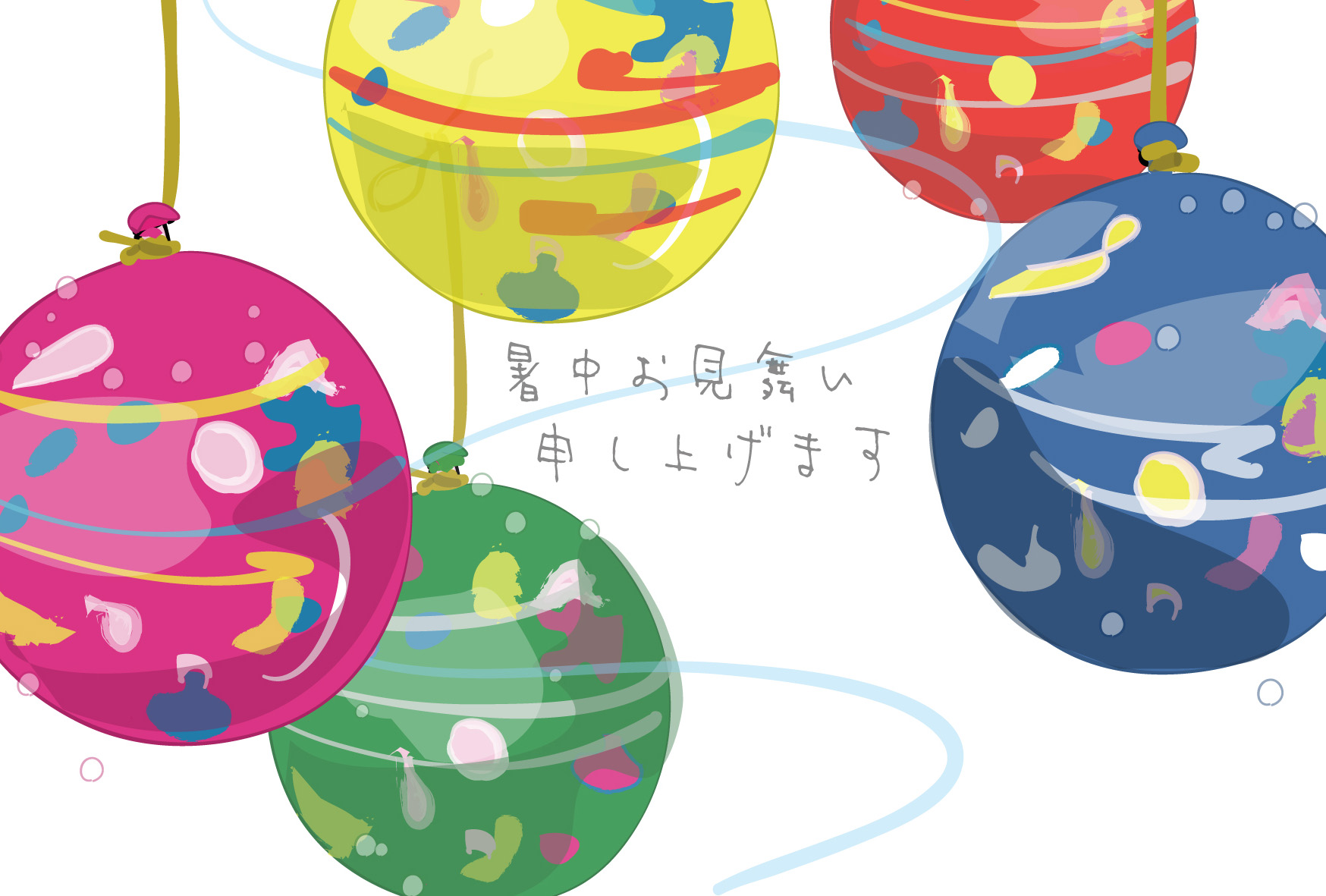 暑中見舞いはがきテンプレート「水風船4」ダウンロード