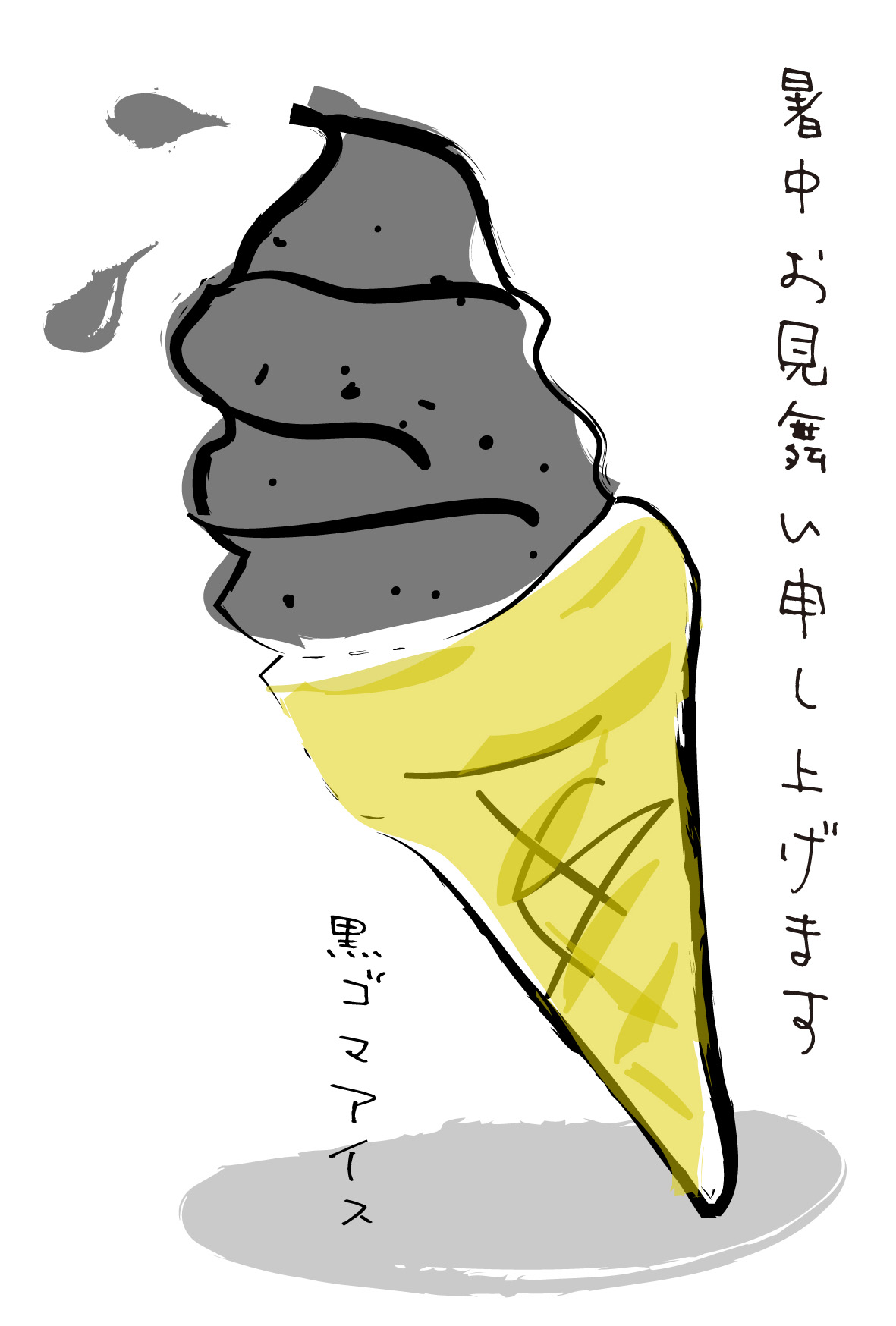 ざっくり黒ゴマソフトのイラストの暑中見舞いはがきテンプレート
