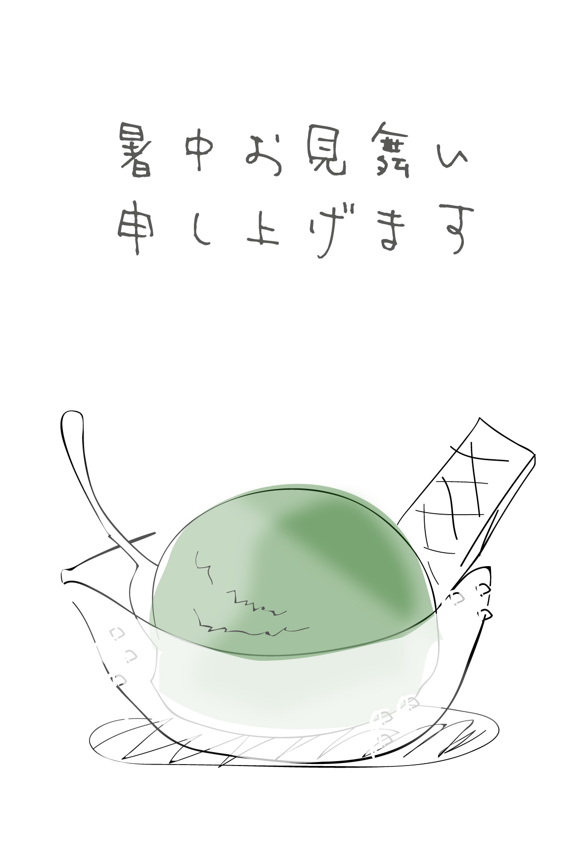 シンプルな抹茶アイスのイラストの暑中見舞いはがきテンプレートです