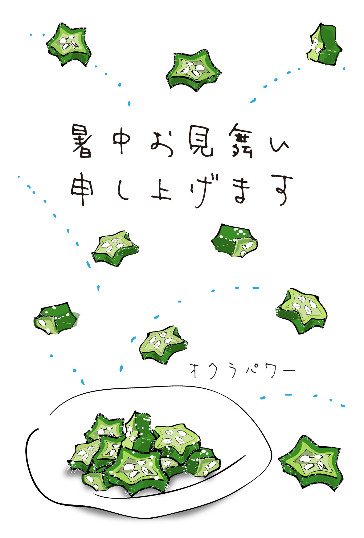暑中見舞いはがきテンプレート「オクラパワー」ダウンロード