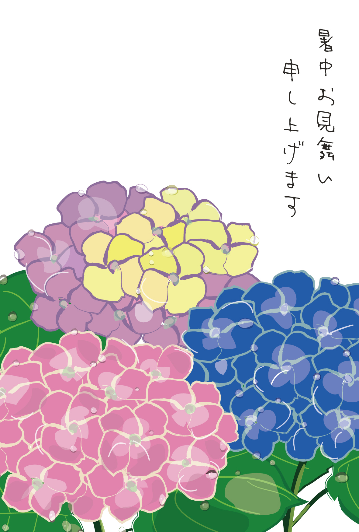 暑中見舞いはがきテンプレート「和風のあじさい3」ダウンロード
