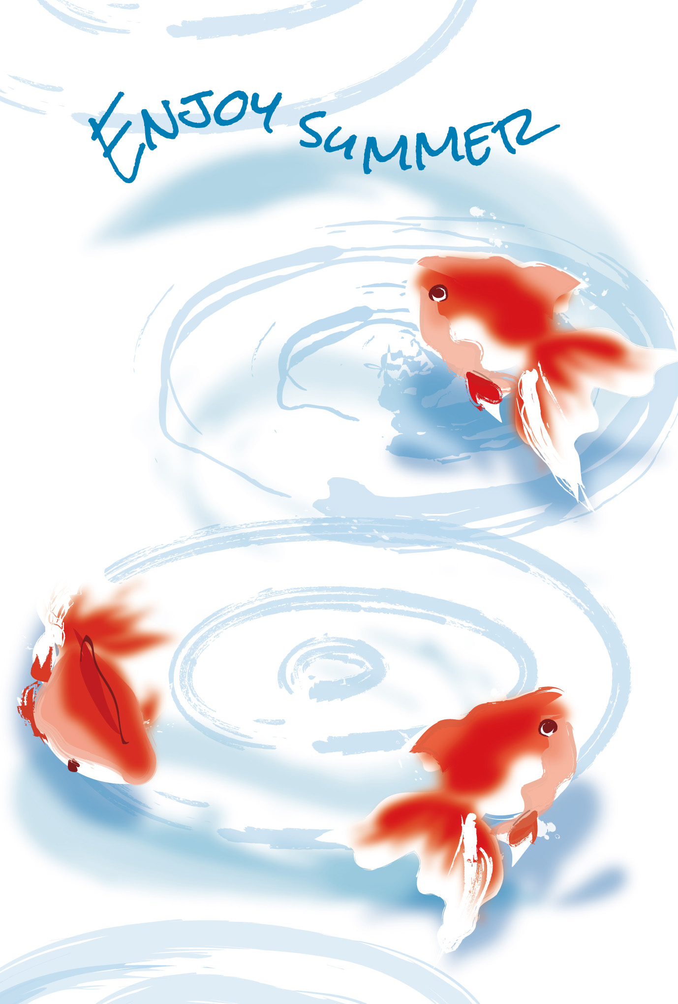 暑中見舞いはがきテンプレート「金魚8」ダウンロード