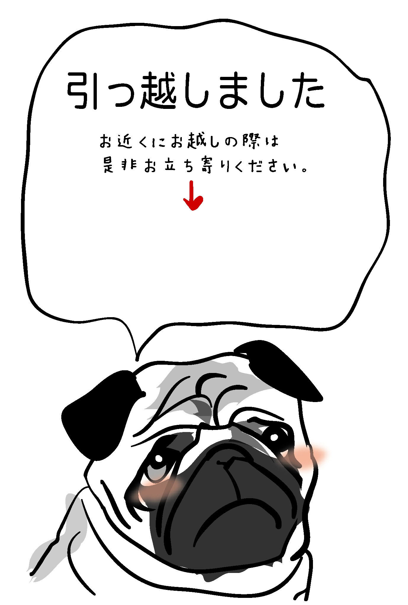 転居・引越し報告はがきテンプレート「パグ2」ダウンロード